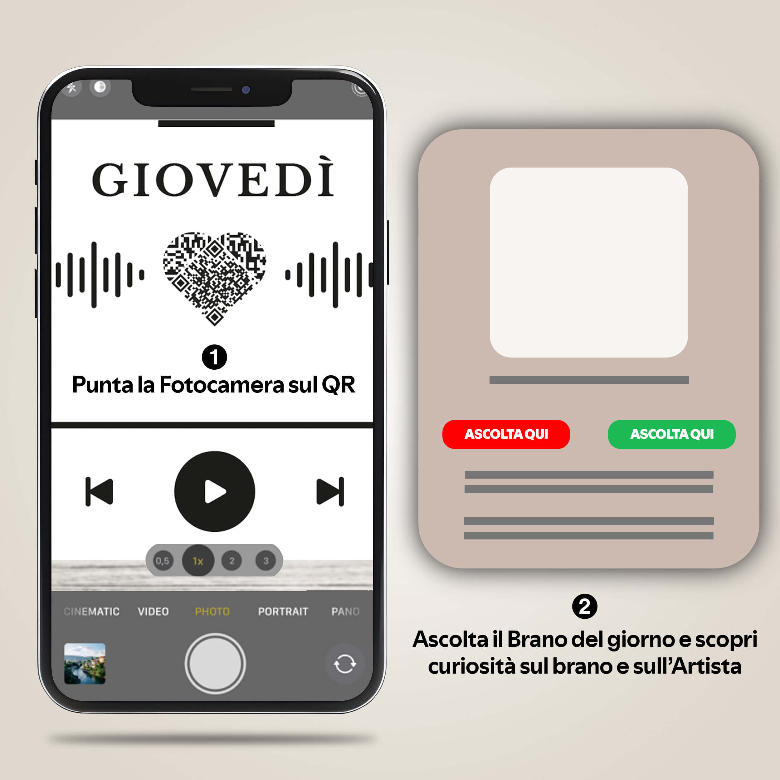 apri la fotocamera e ascolta subito il brano del giorno.